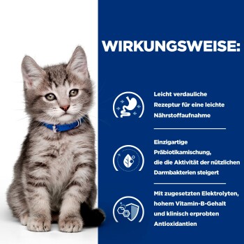 - Zur Verringerung von Verdauungsstörungen bei Kätzchen und zur Förderung eines gesunden Kotabsatzes