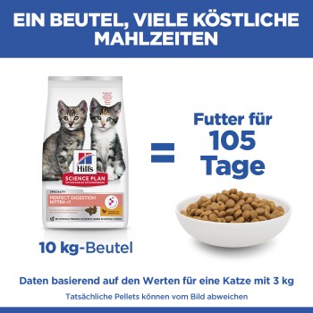 Hill's Science Plan Perfect Digestion Kätzchenfutter Huhn mit Braunem Reis ist ein Alleinfuttermittel für Kätzchen ab einem Alter von 3 Wochen bis 12 Monaten sowie für tragende oder säugende Katzen.