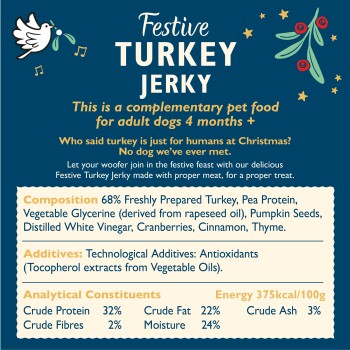Diese verführerische, getreidefreie Rezeptur wird mit natürlichen Zutaten hergestellt, sodass Ihr vierbeiniges Familienmitglied sie während der Festtage genießen kann.