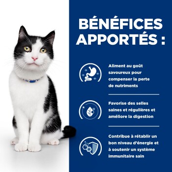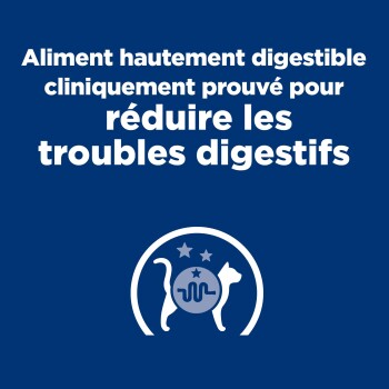 - Nutrition cliniquement éprouvée qui aide à réduire les troubles digestifs chez les chats et à améliorer la consistance des selles.